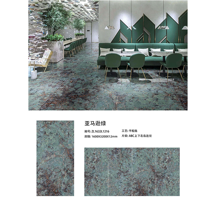 Product Moq | Amazon Green Sintered Stone Slab 3200*1600*12MM:One pallet(One pallet=24pcs) |