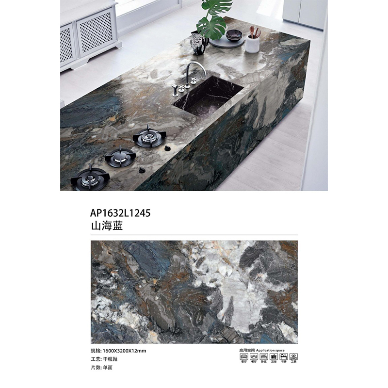 Product Moq | Mountain and Sea Blue Sintered Stone 3200*1600*12MM:One pallet(One pallet=24pcs) |