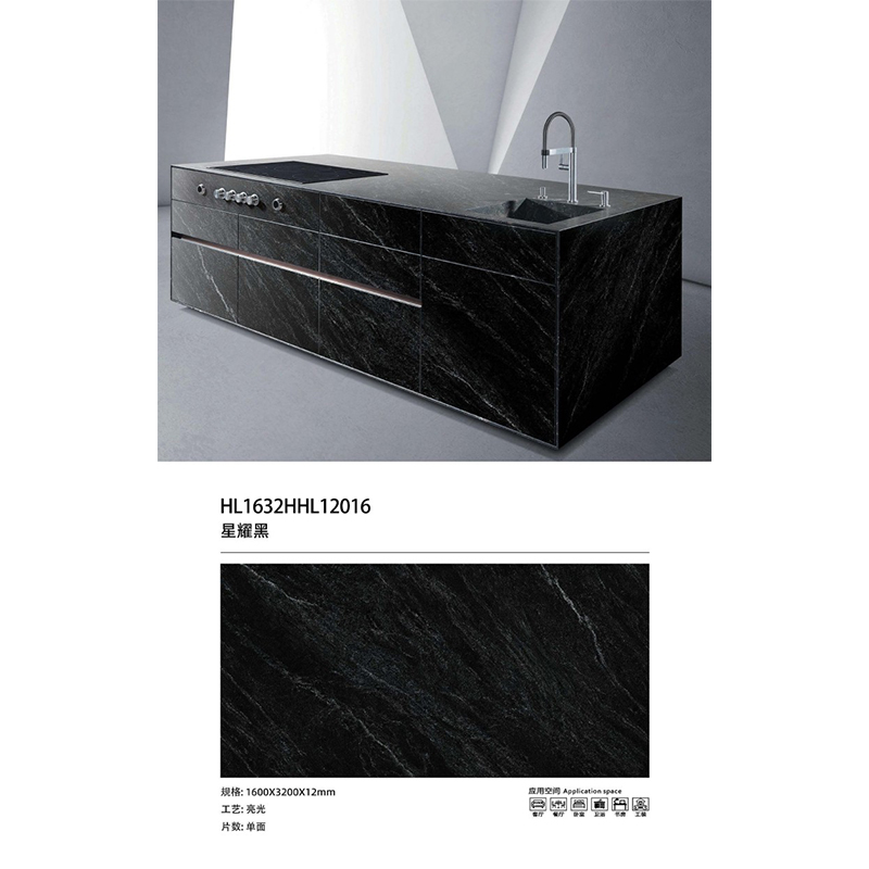 Product Moq | Star Black Sintered Stone Slabs 3200*1600*12MM:One pallet(One pallet=24pcs) |